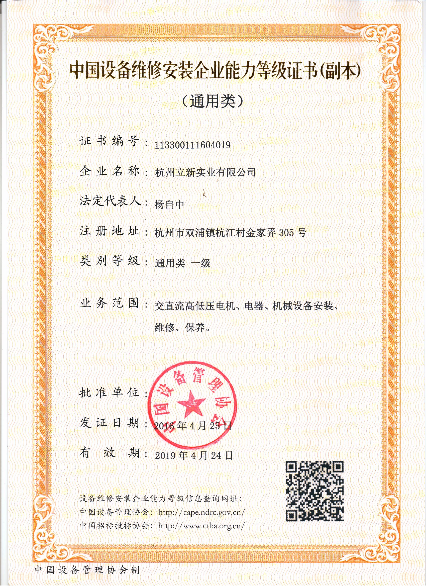 設(shè)備維修安裝一級(jí)資質(zhì)
